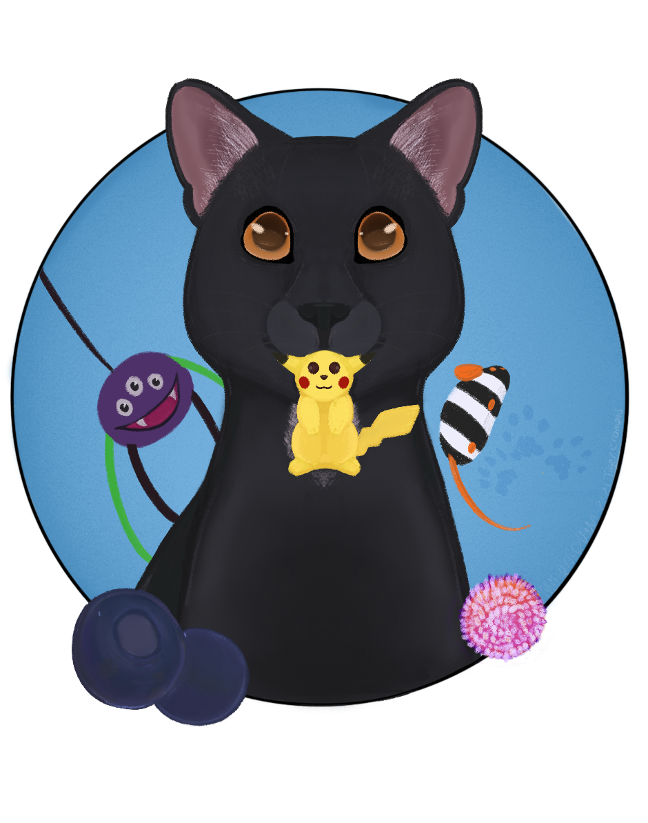 I drew this for my cat vader after he turned one because he's a good boy and his existence helped me through some very dark times in my life. He likes Pikachu and blueberries. I drew this in 2021. :]I drew this for my cat vader after he turned one because he's a good boy and his existence helped me through some very dark times in my life. He likes Pikachu and blueberries. I drew this in 2021. :]0 Comments 0 Shares 4 Views