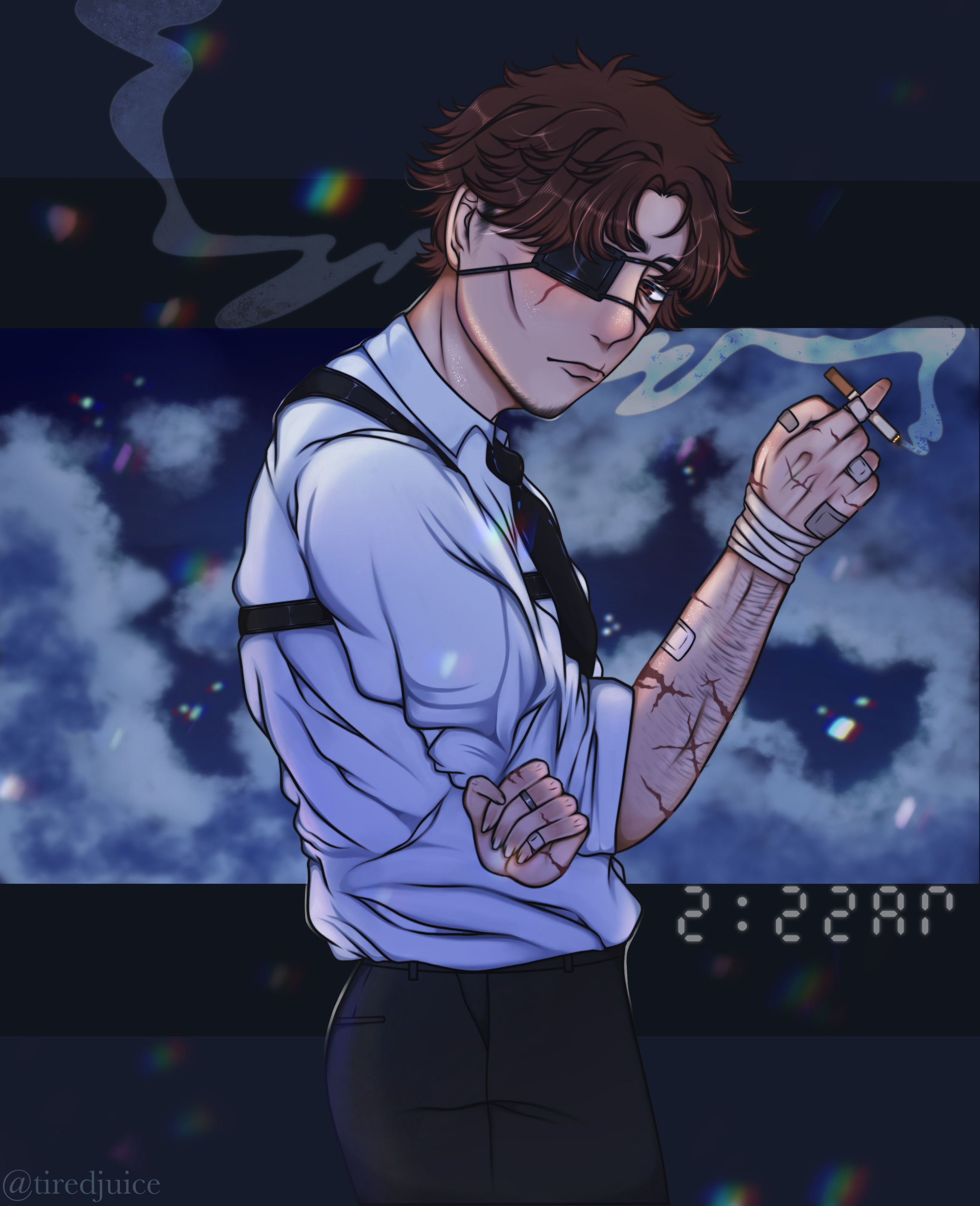 While drawing away I wanted it to symbolize something small about him. As Judas is one to only push his problems aside and rather smoke them away during his breaks.