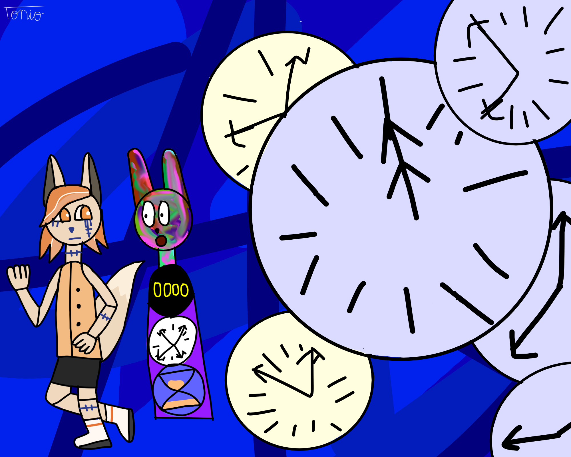 Timebunny and Time Ticker being chased by giant clocksTimebunny and Time Ticker being chased by giant clocks0 Comments 0 Shares 14 Views