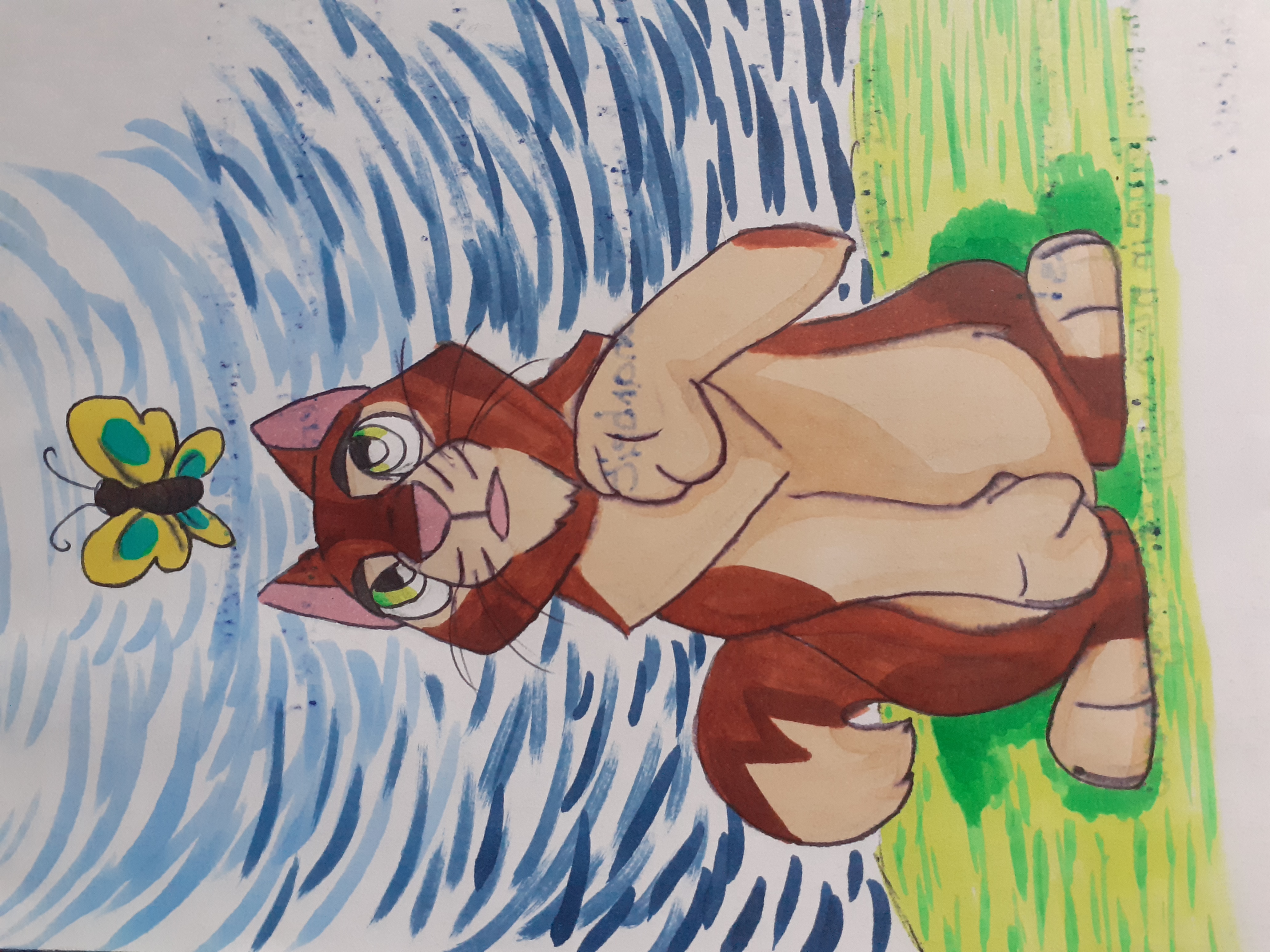 I'm kinda proud of this one, especially since I could practice shading on him. I wanted to make a simple background and I like that one too. Maybe I'll try to practice landscapes some other times.