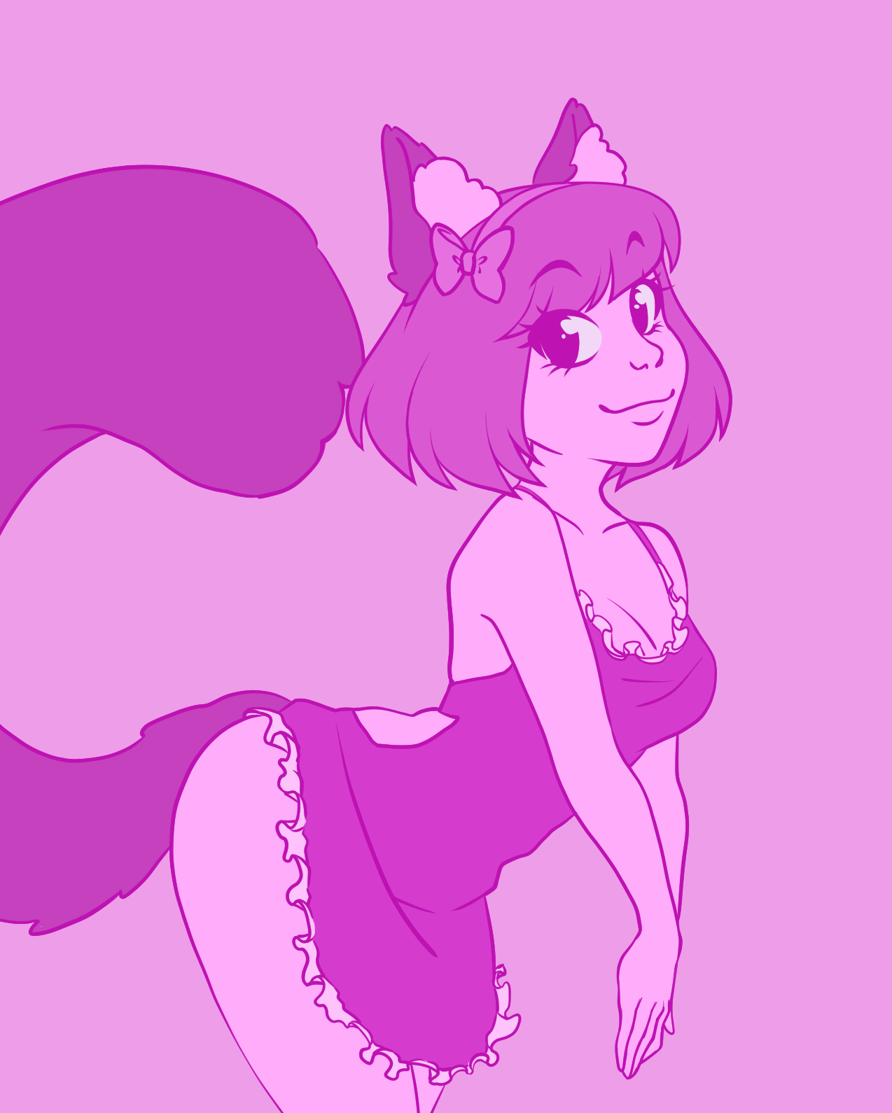 Her old design included cat ears and a fluffly tail lmao