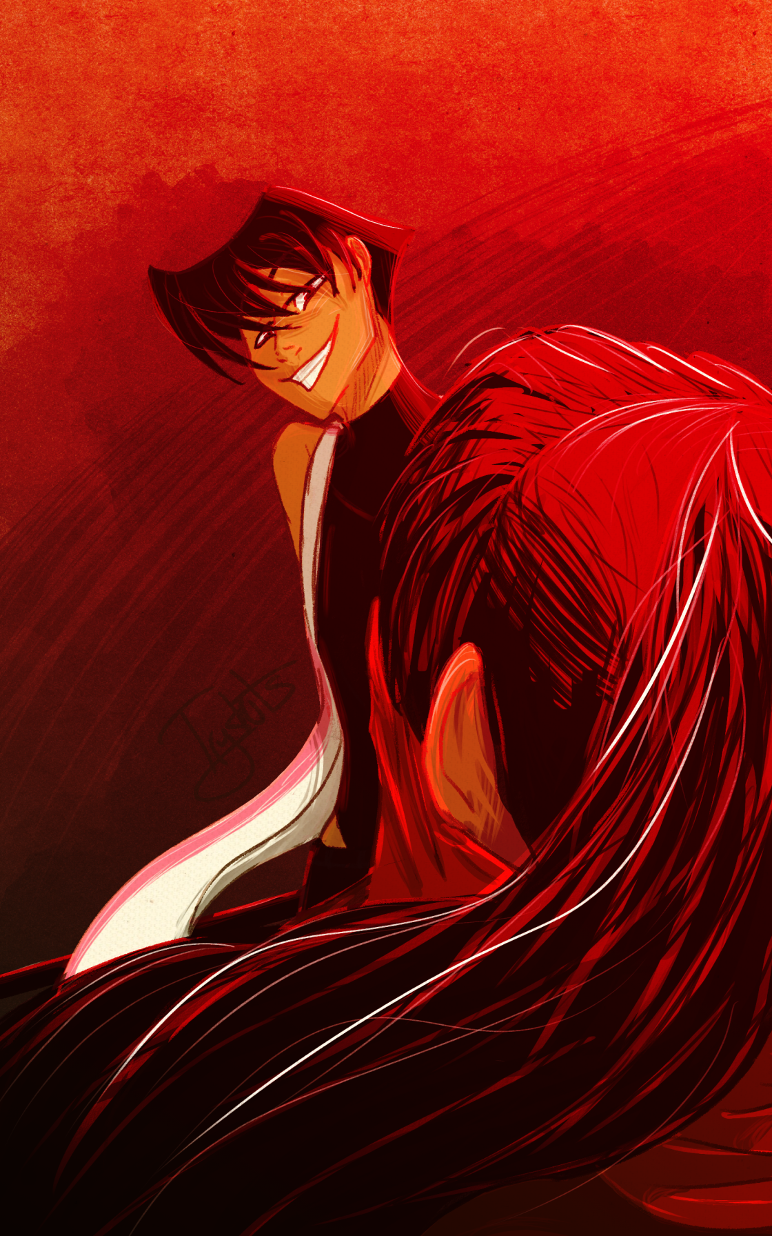 I was particularly trying to figure out how to do his hair colors with the short haircut. (Previously it had been like [this](https://www.deviantart.com/refkins/art/Inktober-2017-Day-1-707473315) and like [this](https://www.deviantart.com/refkins/art/College-The-Best-Party-Dress-652387471), so the framing bangs were a mystery.) I ultimately decided to just do with the hair what I do with my clothes: map to whatever I'm doing at the time IRL. (I change my hair color once a quarter lol.)