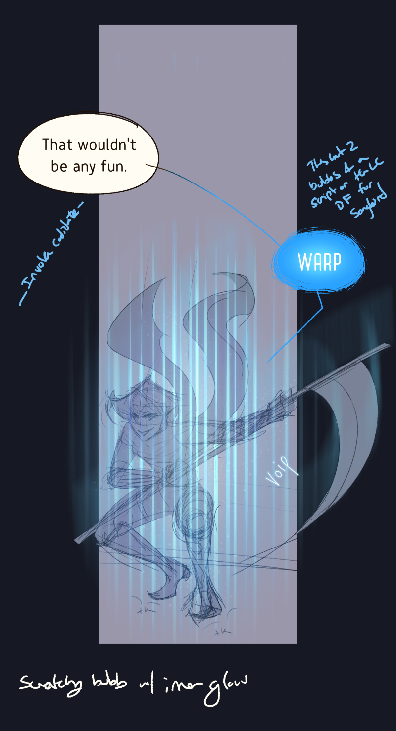 I just really like how this sketch of Seojun came out <3 and I'm pretty pleased w/ the current state of the VFX, although they seem to want to be redone each time to really look good, so I might mess with them more to get something that turns into a CSP asset a little more tidily.In order to figure out what Seojun's Unique Ability, Warp, (which is basically fast travel/teleportation) would look like, I made a test panel. Both that and the current VFX are here. I also prototyped how the speech bubbles for Invocation--which is the act of using an Ability--would look, but I'm planning on going with something a little simpler than what I have here. The spirit is the same, though. I just really like how this sketch of Seojun came out <3 and I'm pretty pleased w/ the current state of the VFX, although they seem to want to be redone each time to really look good, so I might mess with them more to get something that turns into a CSP asset a little more tidily.0 Comments 0 Shares 8 Views