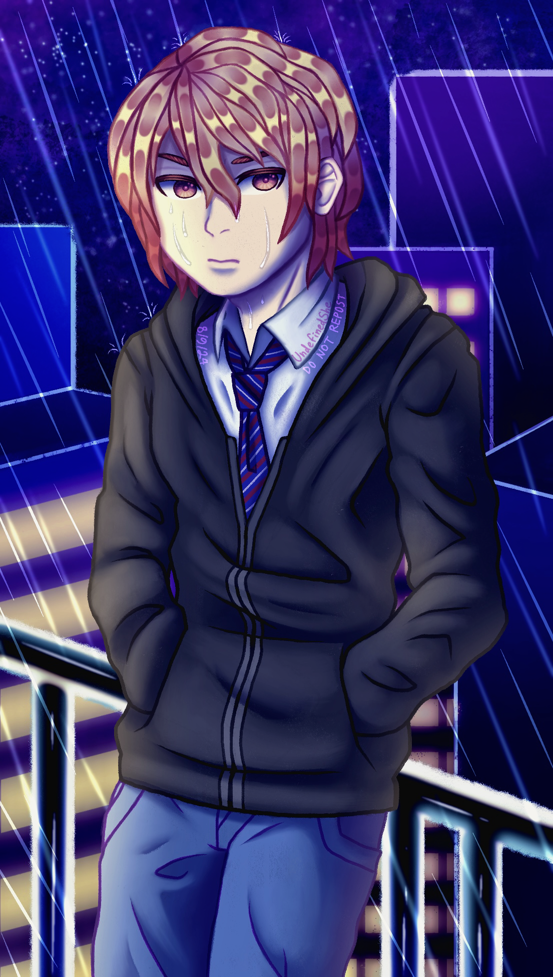 I'm a day off on my weekly post schedule since I overslept yesterday, haha oops! Anyway, I said there'd be more Project Sekai art, and this time it's Tsukasa Tenma! I decided to put him in the rain while looking pensive, and I know that's out of character (if I remember correctly... I haven't read all the stories! :,D). Sometimes I will randomize a song from my Spotify liked songs playlist to base my art off of. At the time, I got "All The Things She Said by t.A.T.u." So, my brain went "aw yeah, angsty rain photo time," and this is what I made, lol.