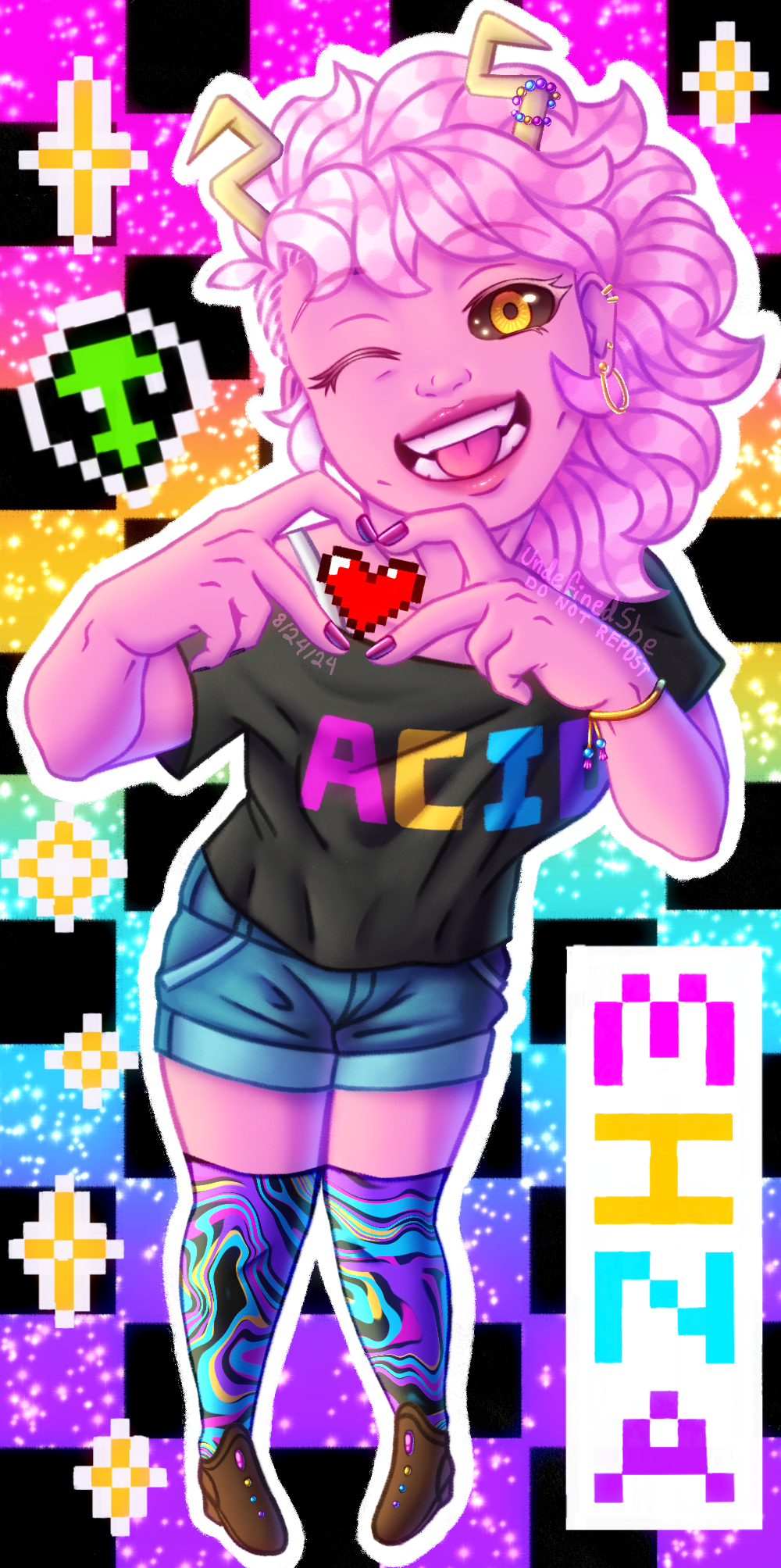 Speedpaint: https://youtube.com/shorts/rhoLVbuECNI?feature=shareHere is a drawing I made of Mina Ashido from My Hero Academia! At the time, this was my take on a grown-up version of Mina before the manga ending came out. I hadn't considered that her horns would get longer, so that fact really surprised me! She's such a fun character, and I enjoyed drawing her too. I'm super proud of how I made her hands in this picture as well! Not so fun fact, I started this drawing in Firealpaca when my laptop fan suddenly broke. While my computer was out of commission, I finished this drawing in Procreate and fully switched to that art program instead ^u^. Speedpaint: https://youtube.com/shorts/rhoLVbuECNI?feature=share0 Comments 0 Shares 9 Views -