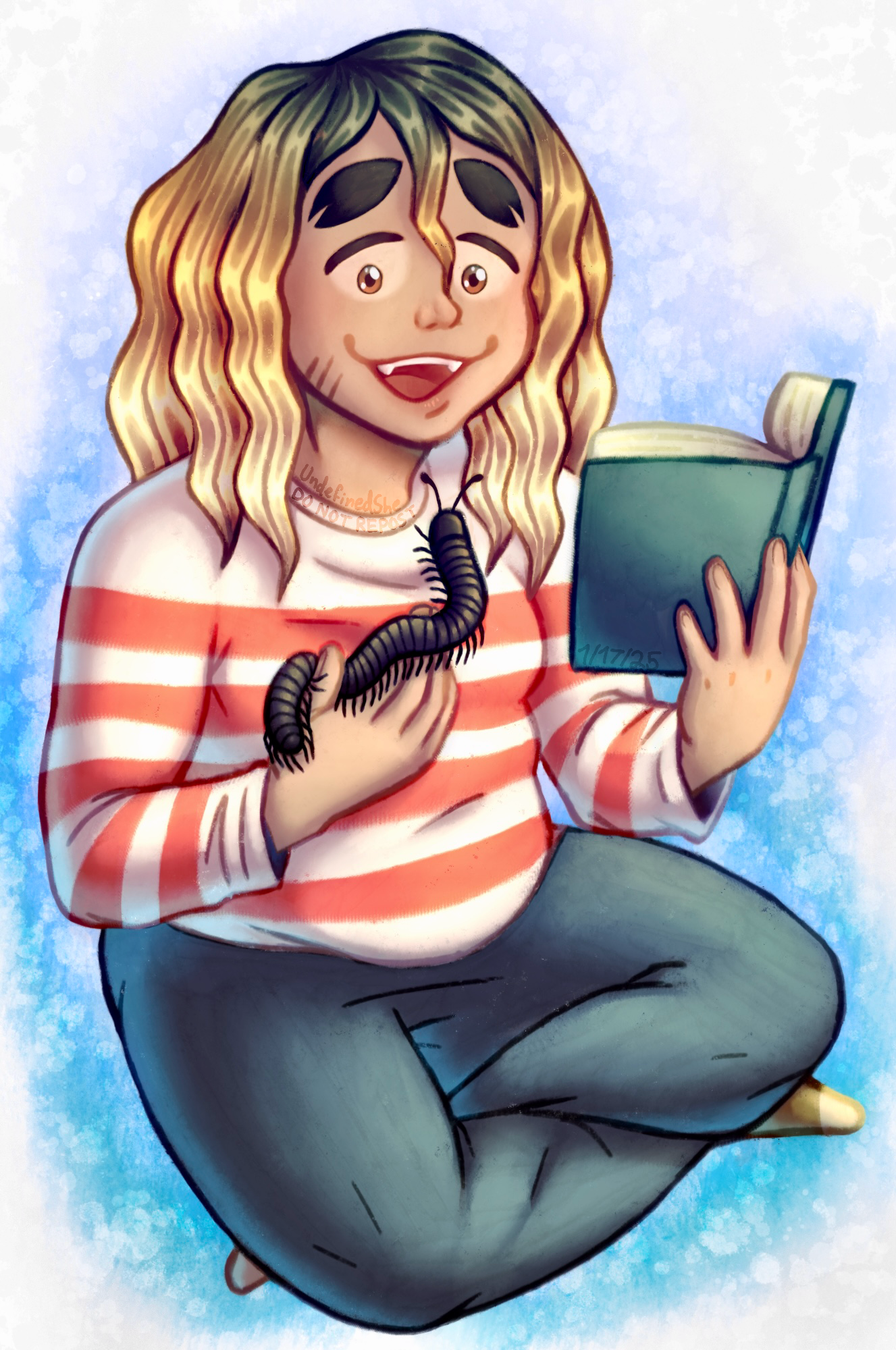 Speedpaint: https://youtu.be/AgDpEDIM1RoHere's a drawing I made of my gijinka of Benjamin from Animal Crossing! So, Benjamin is moving off my island, which made me quite sad since I had grown very fond of him. He's not a popular villager, and some might label him as "ugly," but I think he's so adorable and sweet, haha (I personally love his eyebrows since mine are thick as well, lol). While Benjamin was on my island, he talked about bugs so much. I also saw an image of a millipede held by someone in a library with the caption, "He yearns for knowledge." I figured it'd be in character for Benjamin to read to any pet insects. I'm about to go on a rant, so bear with me. Perhaps I feel so connected to Benjamin since he reminds me of myself as a child! I used to read to my mother's pet birds growing up. On top of that, I am enamored with slugs, snails, millipedes, pill bugs, earthworms, caterpillars, frogs, and even jumping spiders and tarantulas! One time, I was late to grade school on a winter morning since I was trying to melt frozen puddles to save earthworms (I did successfully rescue a few). Last fun fact and arachnophobia warning: Some species of tarantula will keep a frog in its burrow as a form of a mutualistic relationship! The tarantula will protect the frog from predators, and the frog, in return, will protect the spider's eggs and the spider itself from pesky insects! While I am fascinated by spiders, they still sometimes give me the chills in real life if they're large enough, lol... I'm more afraid of giant male mosquitos than spiders...! Speedpaint: https://youtu.be/AgDpEDIM1Ro0 Comments 0 Shares 9 Views -