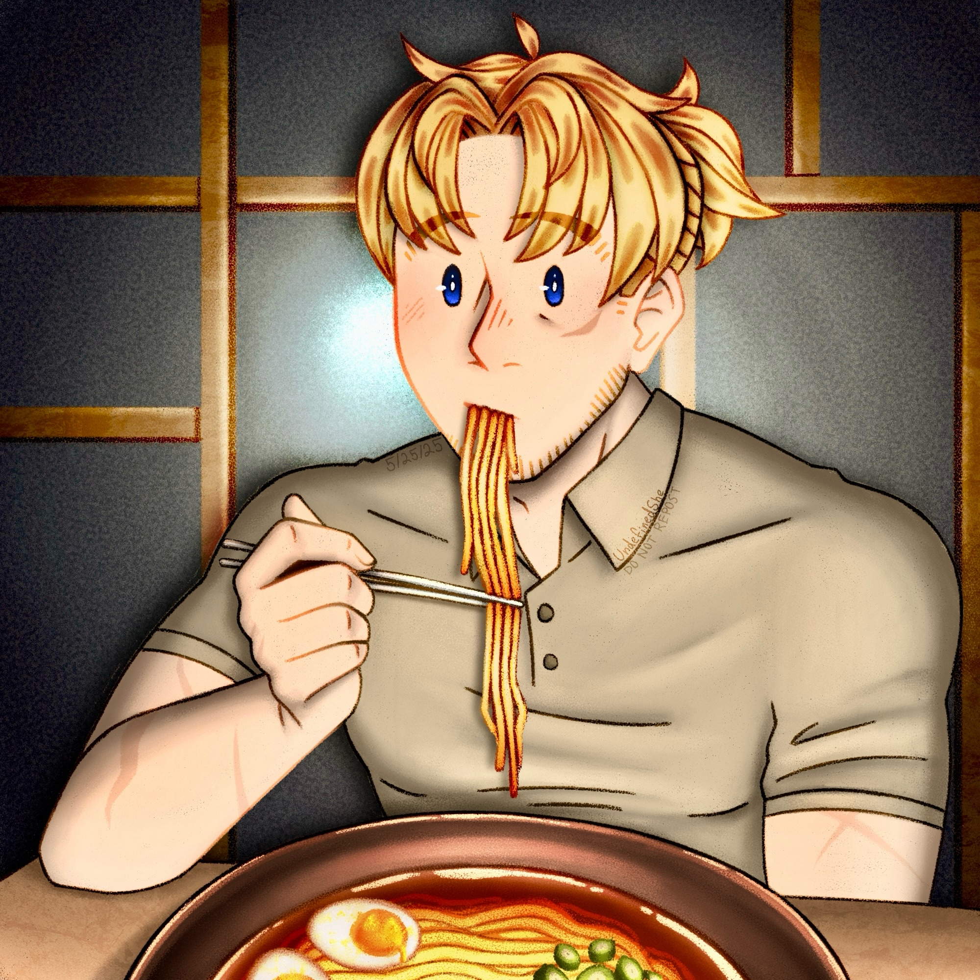 Speedpaint: https://youtu.be/wEbGsB-2vBoHere's a drawing I made of my rendition of Pro Hero Mirio Togata from My Hero Academia! Now, I've already seen his new hairstyle in the timeskip manga. While many appear to prefer Mirio's old hairstyle, I think the new one is rather fitting, with him being dubbed the "comedy hero" and all! However, I believe it's fair to say he wouldn't wear his hair in a pompadour style during his day-to-day life, haha. Unless he's that committed to the bit, then I'd be impressed. Aside from that, this is my interpretation! I was inspired by his middle school hairstyle, so I created something similar but with an undercut. I haven't seen anyone draw Mirio eating ramen yet, so I decided to give it a try since it's his favorite food! At least, it says so in his trivia. I wanted to convey that someone was taking his photo with the flash on, and I think I did rather well. On another note, I find his eyes so cutely endearing, lol. Speedpaint: https://youtu.be/wEbGsB-2vBo0 Comments 0 Shares 8 Views