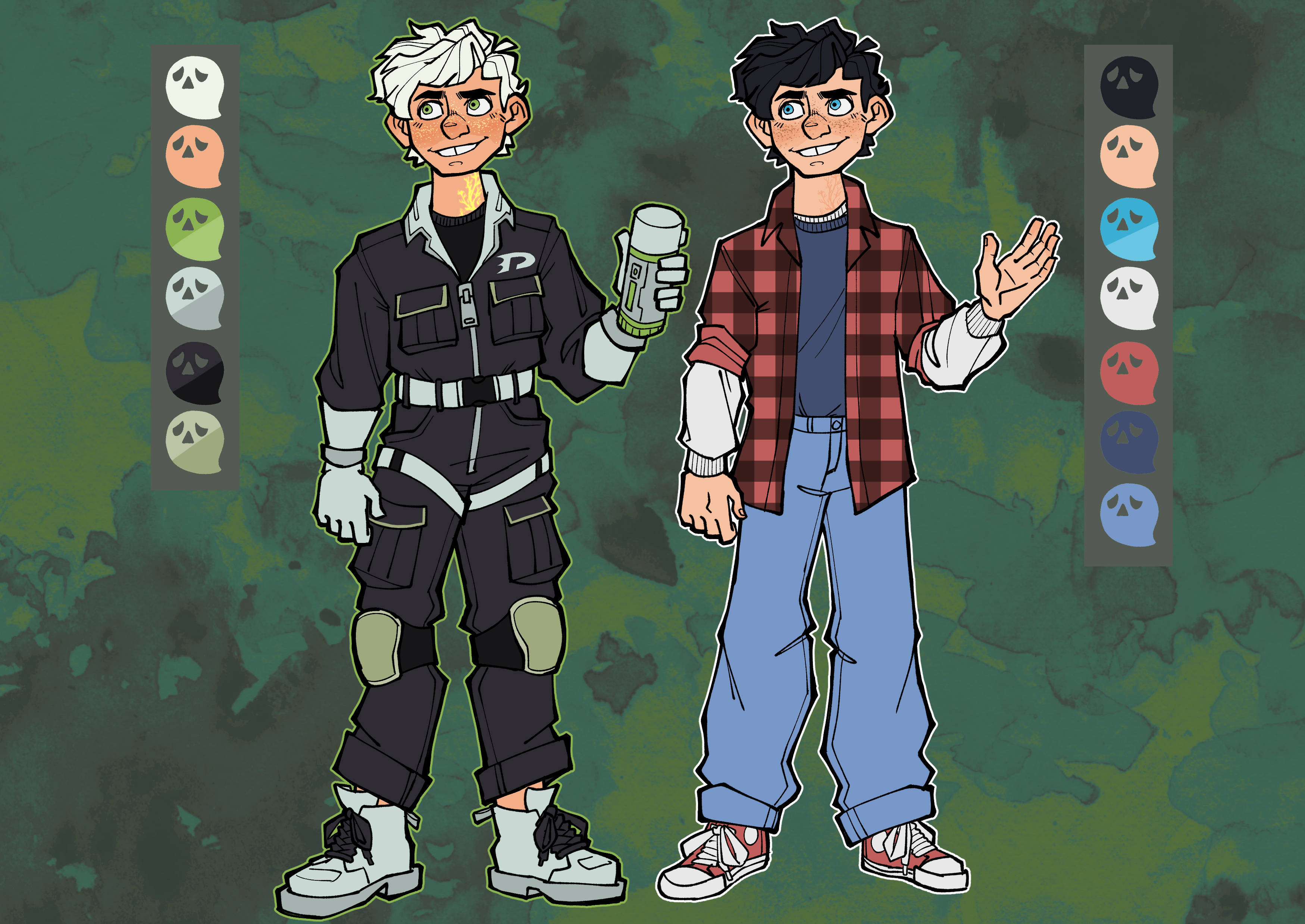 My redesign of Danny Fenton and his ghost counterpart. I've always loved Danny Phantom growing up and a few months ago I thought I would take a crack at some redesigns! I'll keep my notes brief, but this is essentially how I would normally go about designing a character. I like to think of what's practical and comfortable for them first and then think of the style aspect second. For instance: I gave him coveralls with pockets and kneepads instead of a spandex jumpsuit.