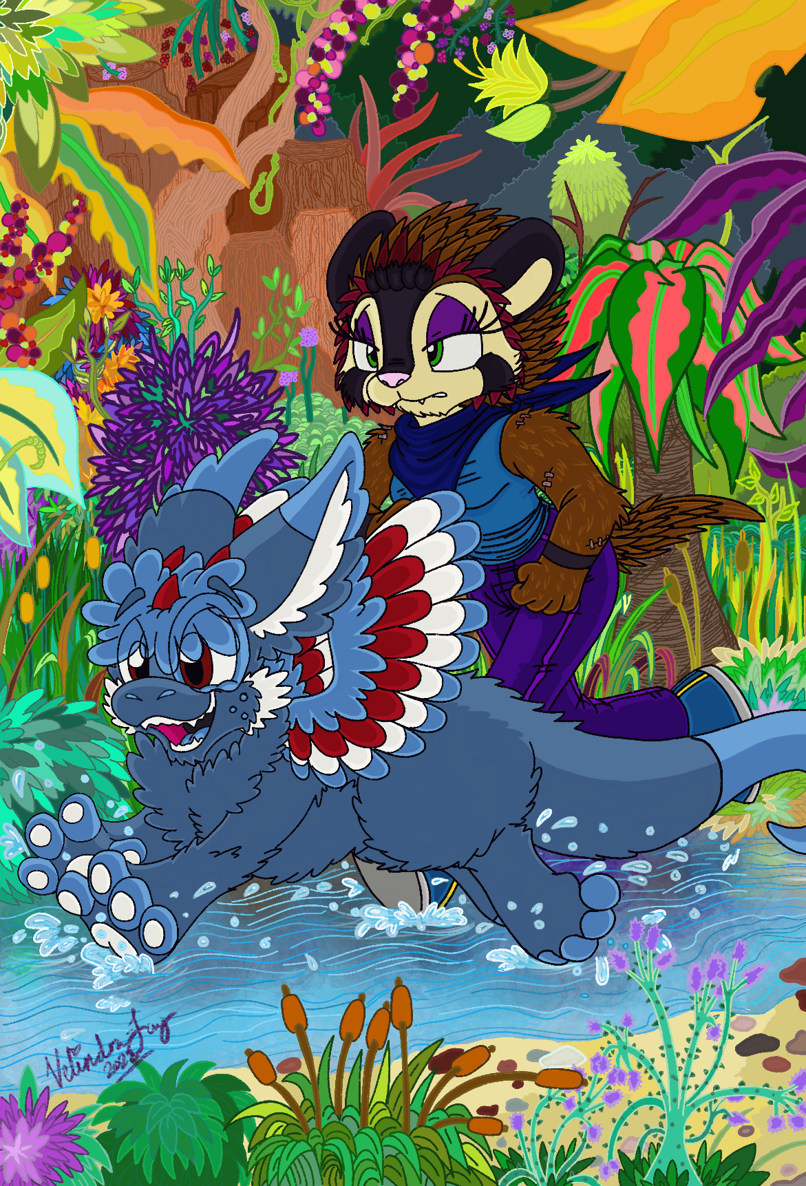 Thanks for looking and letting me ramble on about it for this long =DMy first and main fursona, Velindra-Jay Hedgehog and her emotional support creature (ESC) Fluffy, a Dutch Angel Dragon on a run throughout the landscape of the Grey Zone on Valanciana Island (2021). Been developing her origins/background story for a little over 35+ years now, and this is one of many images I've been chipping away at since returning to doing digital art on a part-time basis after longterm eyesight issues (take care of your eyes - you need them!) This was done as a 3 - 4 layer experiment in Procreate; yes, the background itself is all on one single layer and I'm probably never going to do that again because it was kinda hellish and there's still missing pixels here and there; but it was fun designing all that detail. The sketch was started in early 2017/completed late 2019, and the colour version started in 2020/flats completed in late 2021. The shaded/final details version was completed late last year during the Christmas rush, a nice calming activity during what was the equivelant of absolute heck and back. I'm probably not going to fix anything else on this one, apart from maybe trying to fix a few more pixels (depending on how my eyesight wants to play, aha), so I'm calling it done. Thanks for looking and letting me ramble on about it for this long =D0 Comments 0 Shares 8 ViewsPlease log in to like, share and comment!