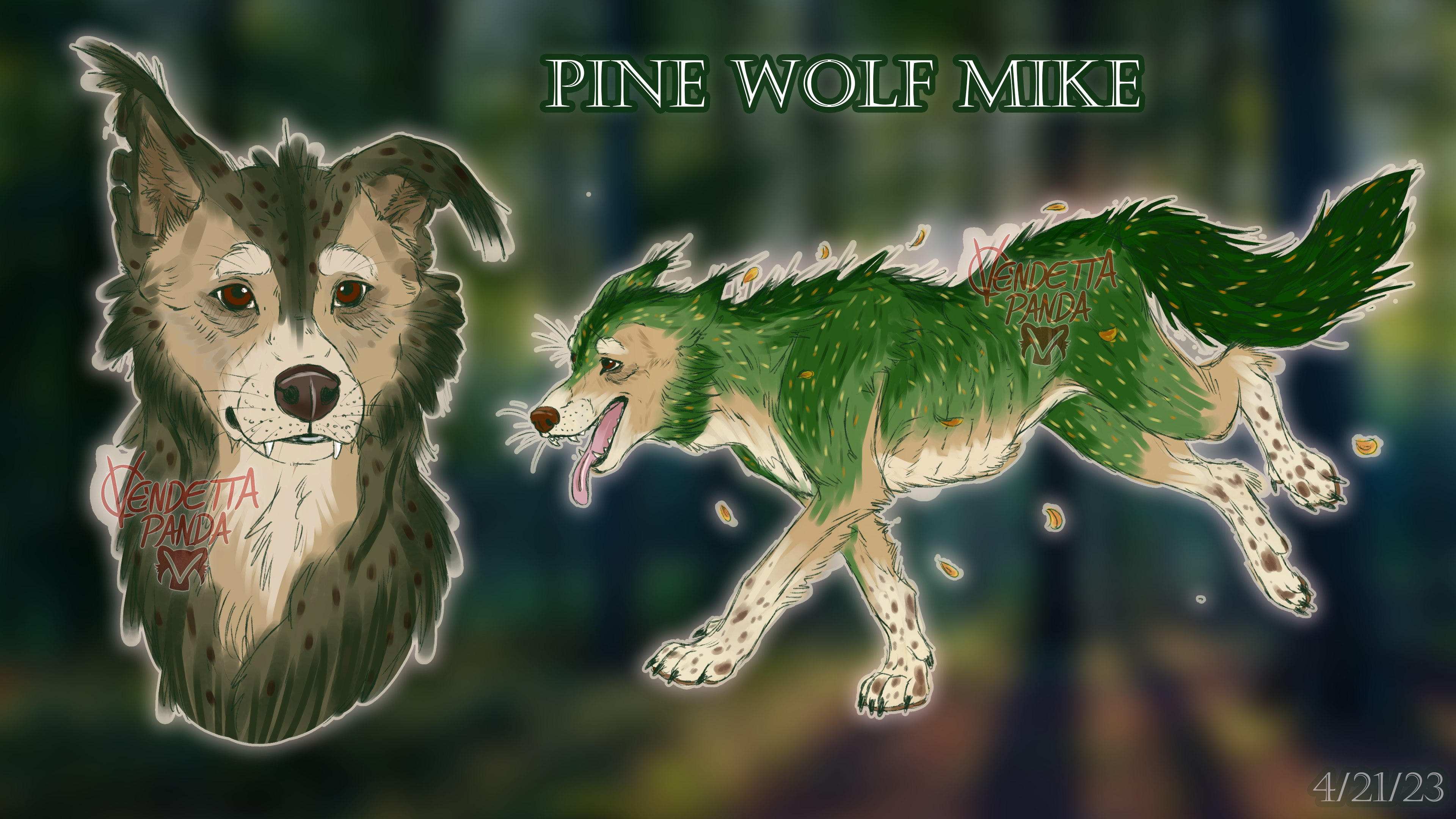 Finally got a reference of Mike in his fantasy verses! Pine Wolf(walker) Mike is the perfect blend of flora and fauna, able to grow plants, flowers, and fruits both on and around him. His appearance changes based on his own condition. To defend himself, he can gather sections of his fur up into barb-like quills that resemble pine needles that keep any would-be attackers at bay.
