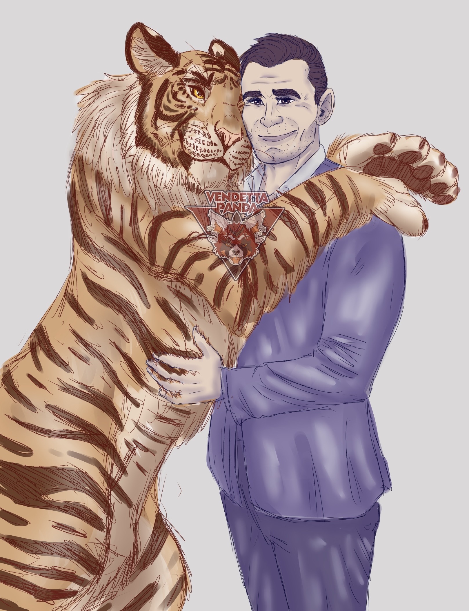 Makarov holding a tiger like it’s his wife but it’s actually my OC Maverick in tiger form