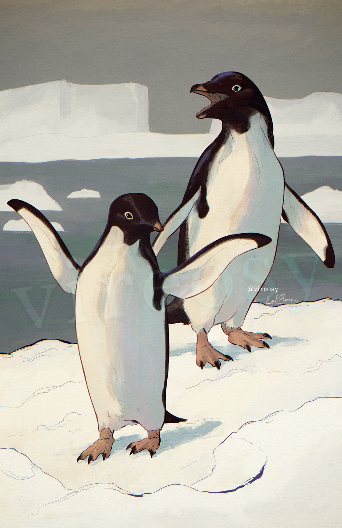 This piece is on Inprnt: https://www.inprnt.com/gallery/vireosy/adelie-penguins/Adélie penguins drawn for Polar Lights (2023 February) Adélie penguins (_Pygoscelis adeliae_) are a common sight along Antarctic coasts and are noted for their curious and bold personalities despite their size. This piece is on Inprnt: https://www.inprnt.com/gallery/vireosy/adelie-penguins/0 Comments 0 Shares 12 Views -
