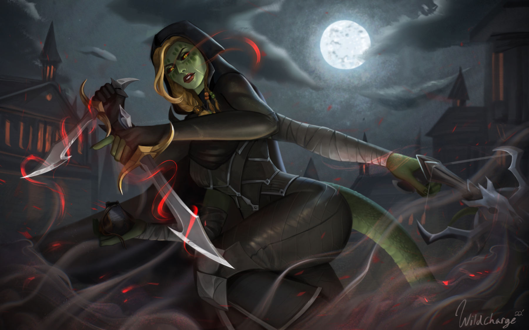 Splash art style illustration of a demonic marilith blooded character in a homebrew DnD campaign for a commissioner. Completed in Procreate for the Ipad Pro. Commission sold for 200$ Time frame 2 weeks. 18 hours of logged painting time.0 Comments 0 Shares 2 Views