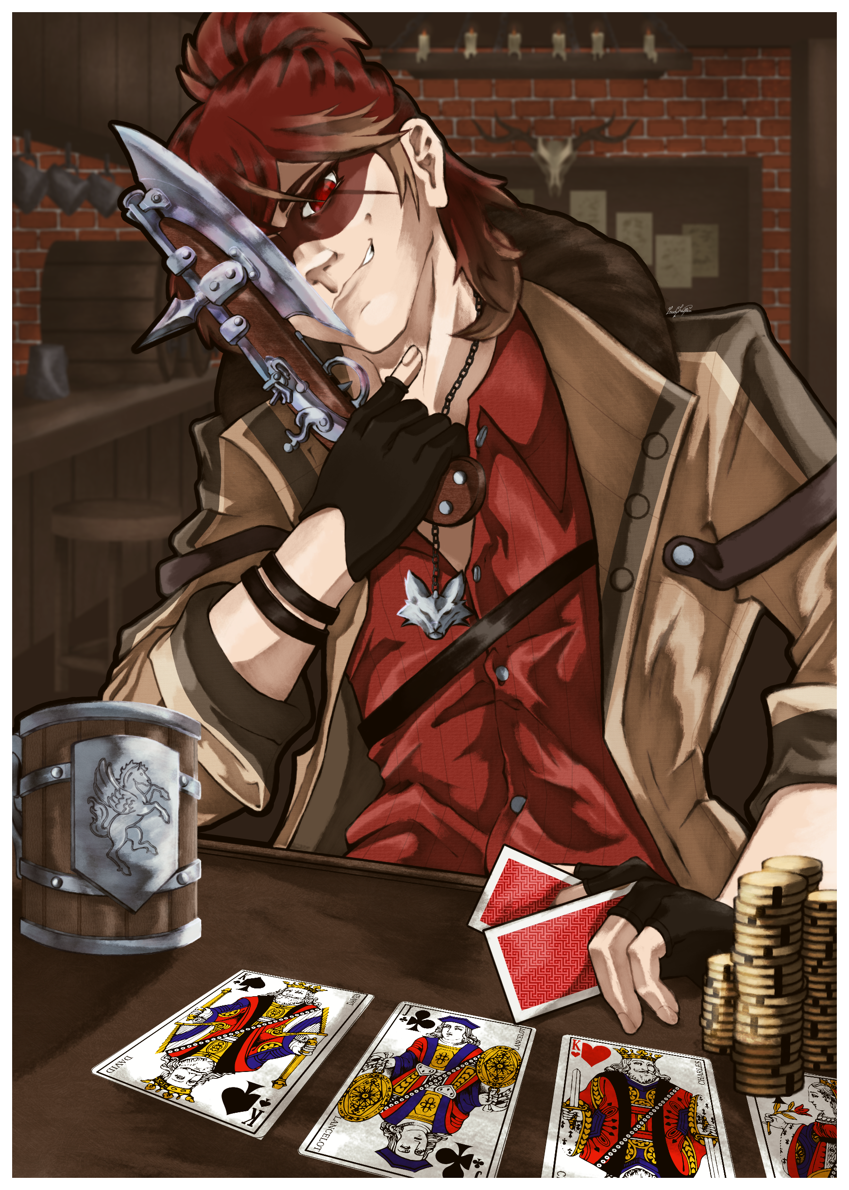 Digital art of a sloth demihuman sitting at a table, playing poker while resting his gunblade against his face with a confident expression, being in a medieval tavern.Digital art of a sloth demihuman sitting at a table, playing poker while resting his gunblade against his face with a confident expression, being in a medieval tavern.0 Comments 0 Shares 62 Views