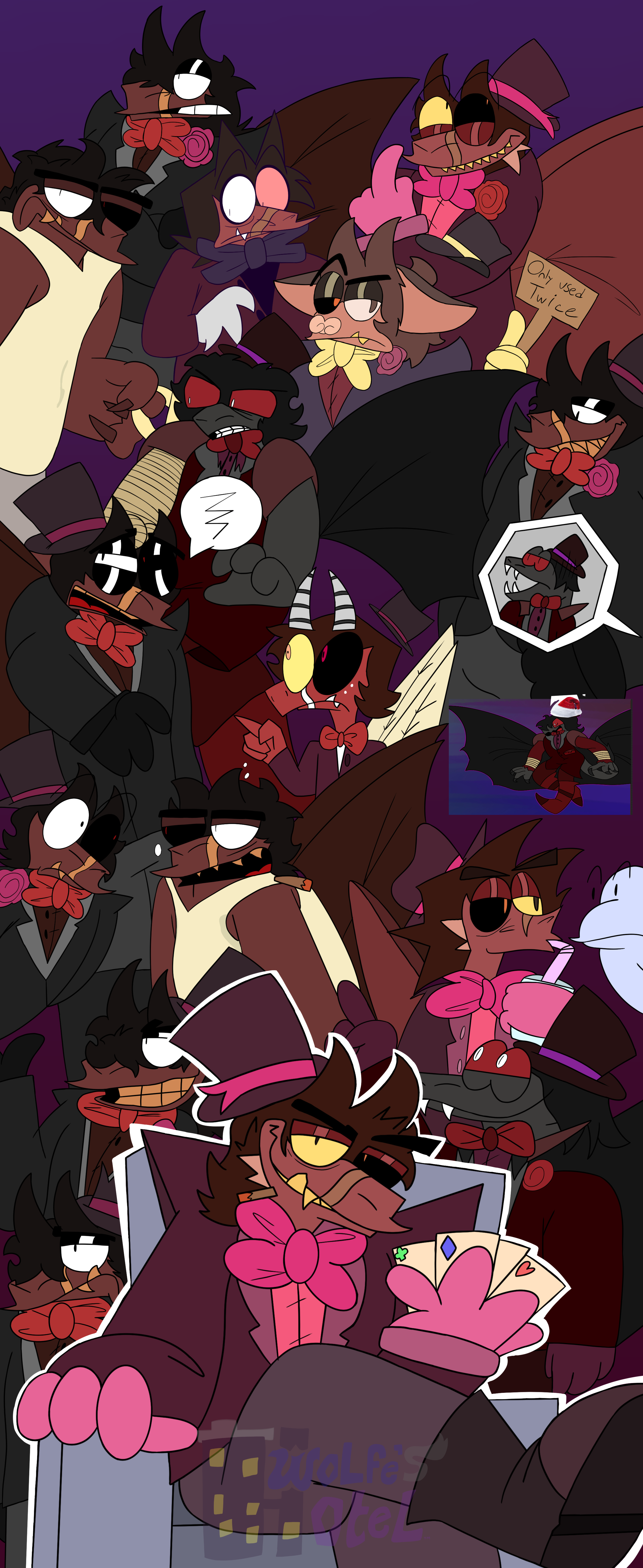 In this poster, You can see all of the different designs of Malthor before we ended up to his final design! From his OG design, to his 2022 design, to now! ^^My first post here on InksBlot lmao- Malthor Umorismo is a character in the Wolfe’s Hotel Series. He wears a maroon colored suit complete with a pink bow tie. Malthor is a professional magician who loves to preform in all theatres down in the NEO City. In this poster, You can see all of the different designs of Malthor before we ended up to his final design! From his OG design, to his 2022 design, to now! ^^0 Comments 0 Shares 6 Views