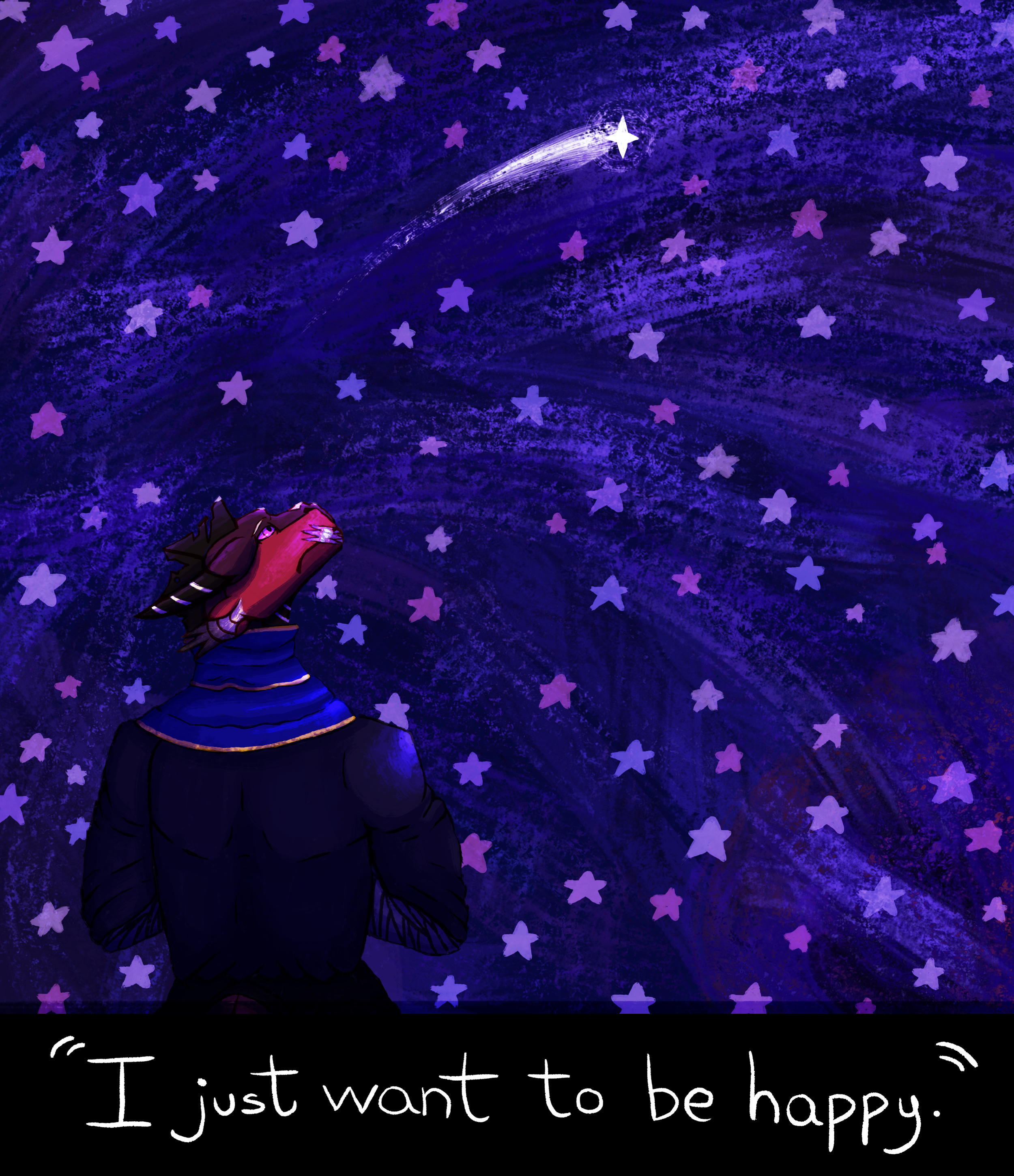 This was an attack for ArtFight 2023 on dragon(https://inkblot.art/profile/dragon)! I'm a big fan of their character, Arthur Blaylock, and I wanted to depict Artie in his element, among the stars. At the same time, I wanted to strike a somber chord with this piece. I tried to intentionally use paintbrushes throughout the entire creation of the image to give it that kind of texture and lean toward a more painted style. I'd say I could have done more, but I'm still happy with the result.A bright star raced by, just for a second, in the skies near the city of Venus. Its light twinkled brilliantly--mesmerizing like a hypnotist's watch, a witch's hex. For what felt like hours it held the heart of Arthur Blaylock, wresting from his scarred form the desire for something, something more than everything that he'd had: death in spades, pain in multitudes, agony _en masse_. It was even to his own surprise that he'd said it: _"I just want to be happy."_ It meant two things. First, he could, in fact, acknowledge that losing his mother and falling into the wrathful clutches of his father for many years (and, by extension, his stepmother and siblings); and, second, that here, in a sprawling grassland near where the city now was, he wasn't afraid to say it. But a flicker of light in his hopeless eyes ... was it enough? No. It would never be. The romantic idea of wishing upon a star and having all one's dreams come true was just that--romantic. He wasn't the dreamy child of a monarch fated to rule the kingdom with the hand of his beloved, nor was he some pauper destined to prove himself. There was only one thing that he could do: he could choose to rebel. To go against everything that his father, that Pwyll, that Xena, that that vile structure of power and manipulation had established. He had to choose. He had to act. It wouldn't be easy; but maybe, through that action, one day ... he would be happy at last. ----- This was an attack for ArtFight 2023 on [dragon](https://inkblot.art/profile/dragon)! I'm a big fan of their character, Arthur Blaylock, and I wanted to depict Artie in his element, among the stars. At the same time, I wanted to strike a somber chord with this piece. I tried to intentionally use paintbrushes throughout the entire creation of the image to give it that kind of texture and lean toward a more painted style. I'd say I could have done more, but I'm still happy with the result.0 Comments 0 Shares 14 ViewsPlease log in to like, share and comment! -