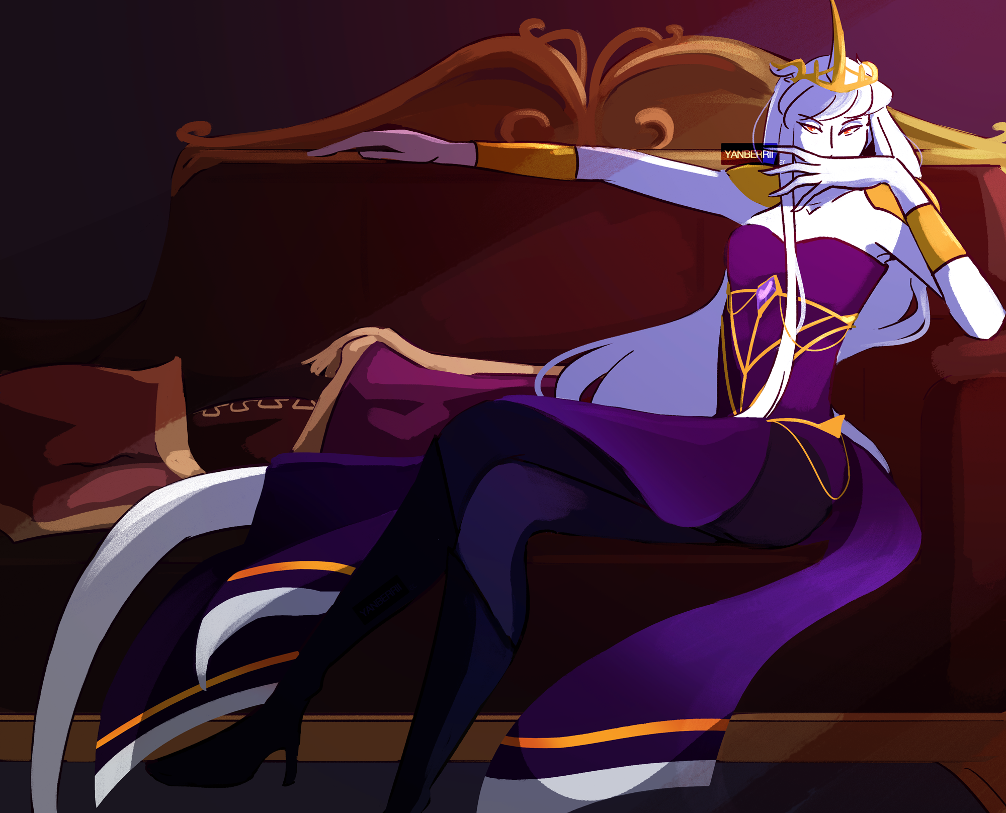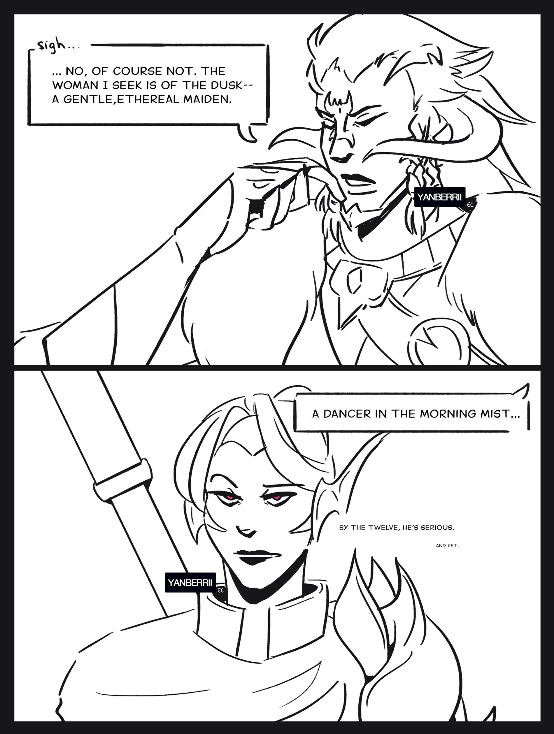 Minutes later, when the dragon is felled and one of Verena's allies turned to ash, Diadem stands atop the dragon's corpse and smirks down at the woman that dares to try to usurp the Lady Fate.