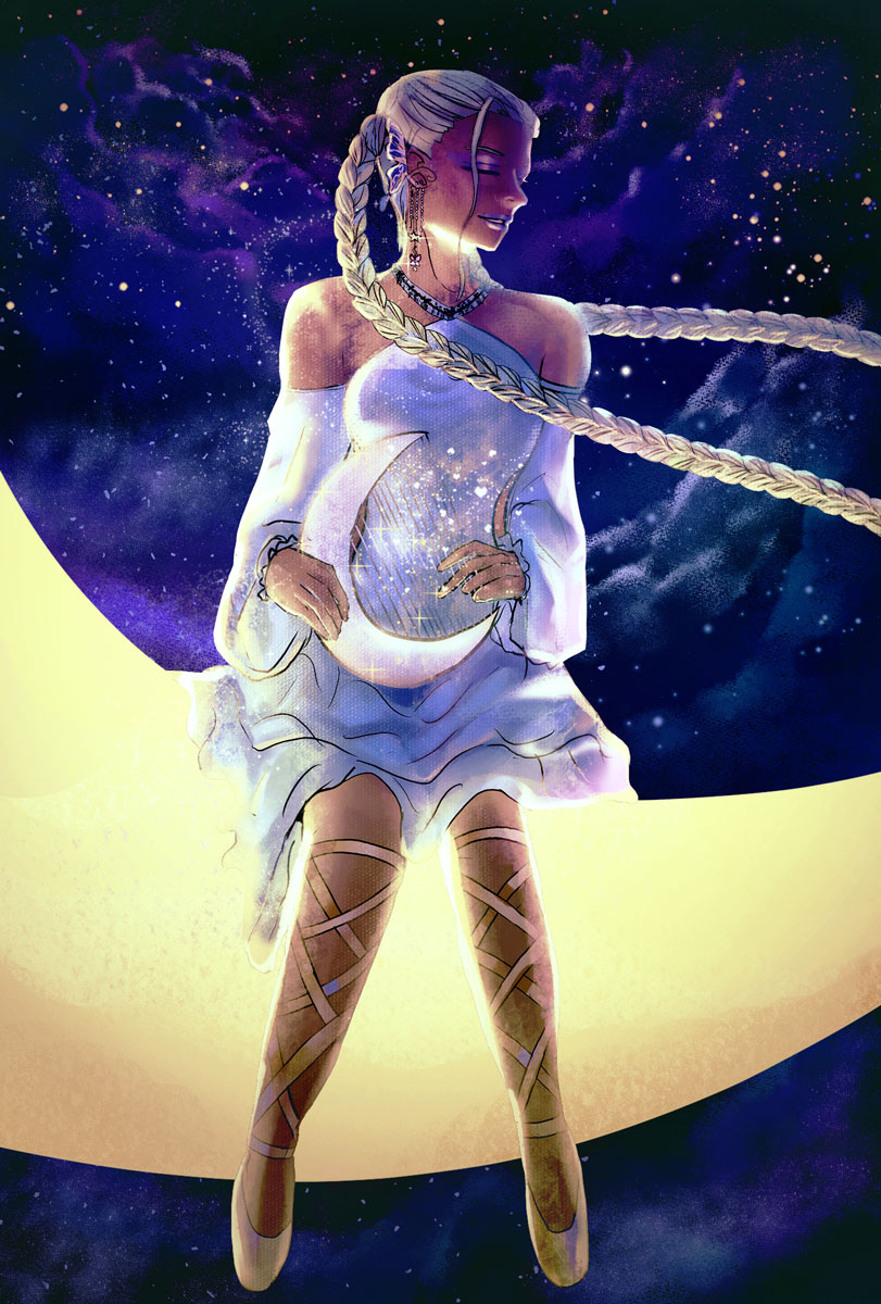 My DND character Sylvia playing her moon-shaped lyre on the moon. I imagine this scene being close to her performing on stage as the dancer and musician she is. I actually really love this piece.My DND character Sylvia playing her moon-shaped lyre on the moon. I imagine this scene being close to her performing on stage as the dancer and musician she is. I actually really love this piece.0 Comments 0 Shares 3 Views
