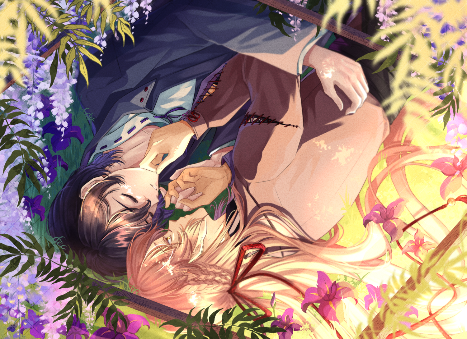 Hisato(left) and Naru(right), surrounded by their symbolic flowers. These two are characters from our original collab story, Kono Yo no Shuumatsu Made mo [この世の終末までも], or simply KonoYo. It's my first time posting here, hoping to upload more art to fill my gallery!