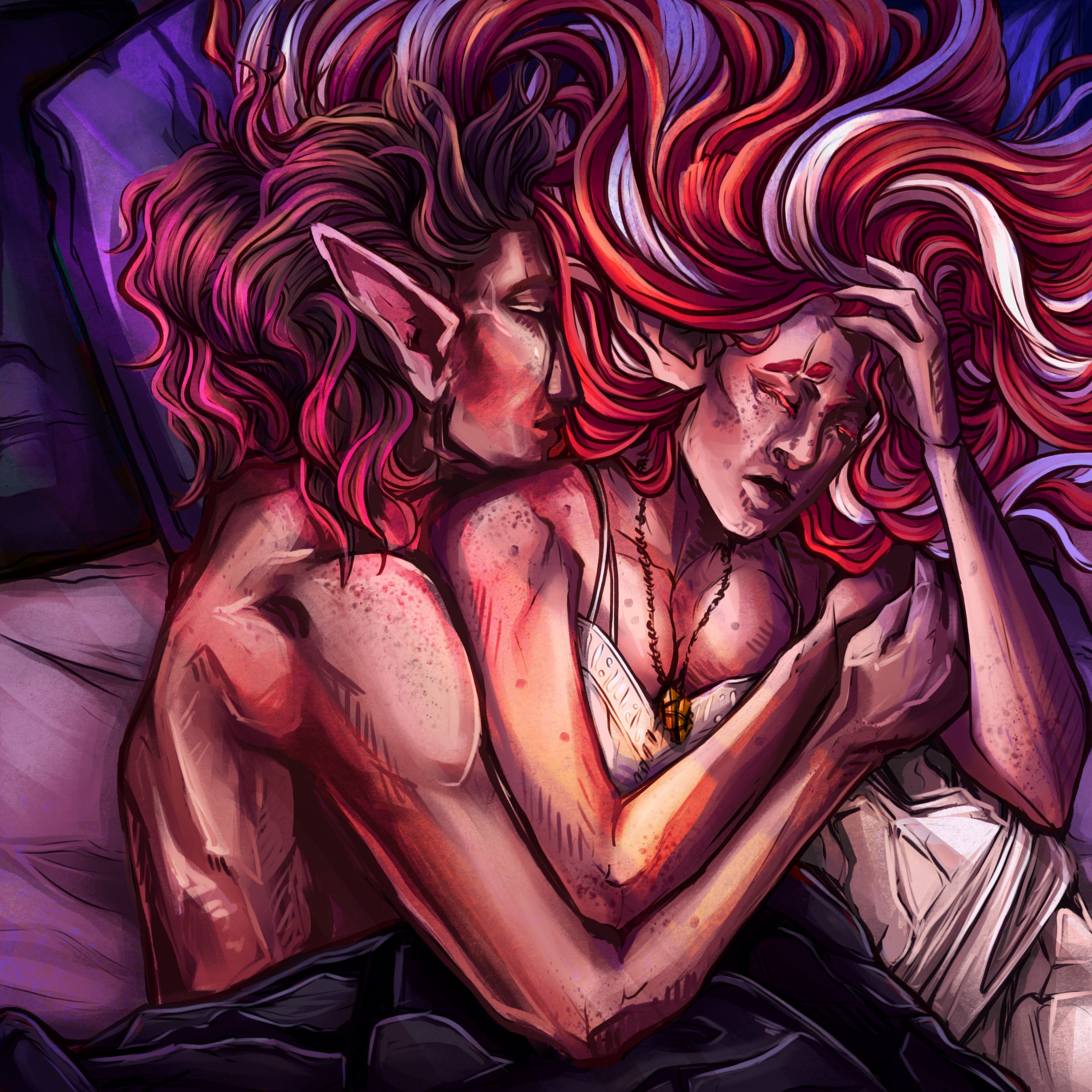Here's the thing-- I'm not really proud of this piece anymore, but I made it at the peak of my debilitating migraines, and it brought me so much comfort to give an OC the same issue and have her recieve support I didn't get.