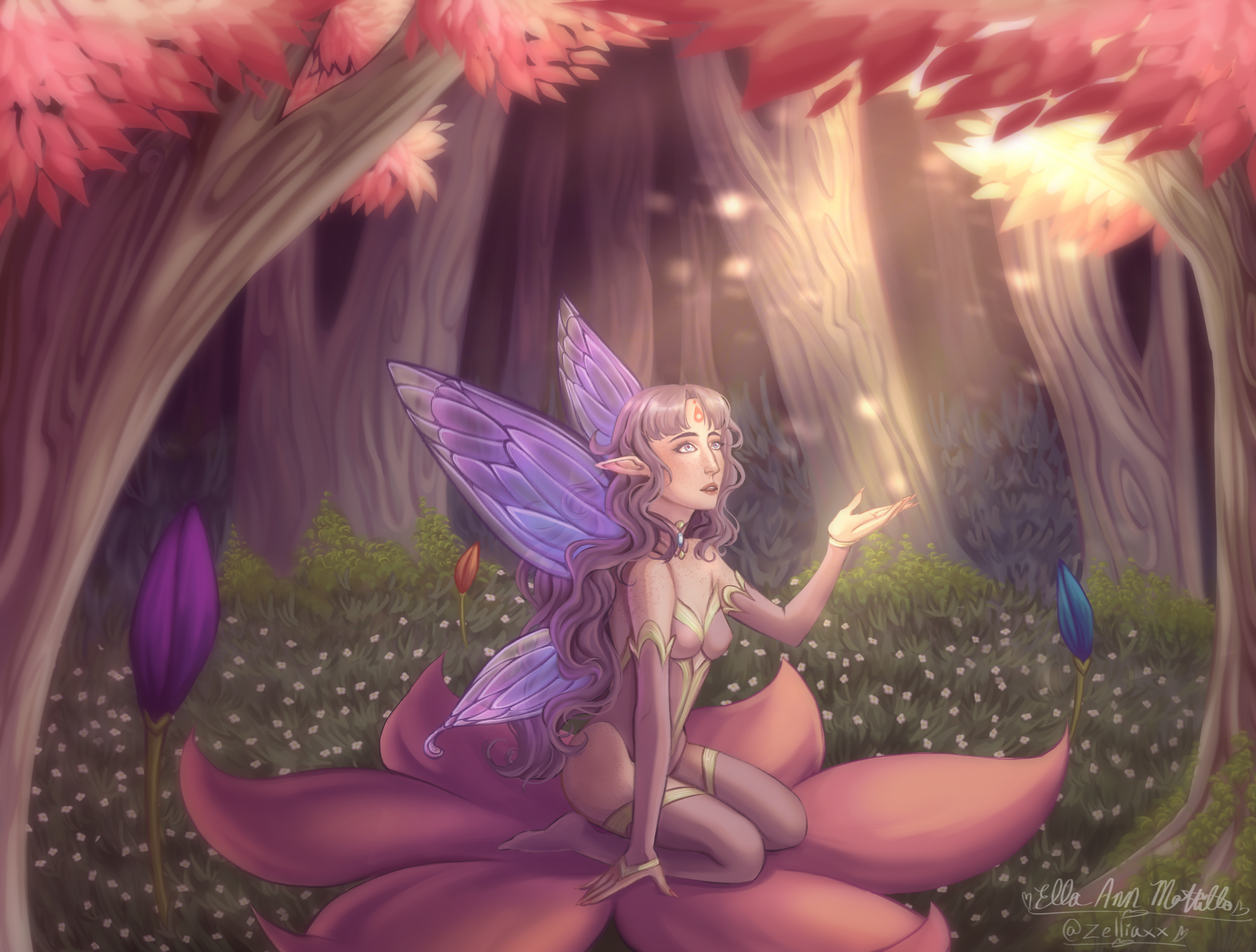 My oc Aurora as a fairy being born out of a flower in the forest.
