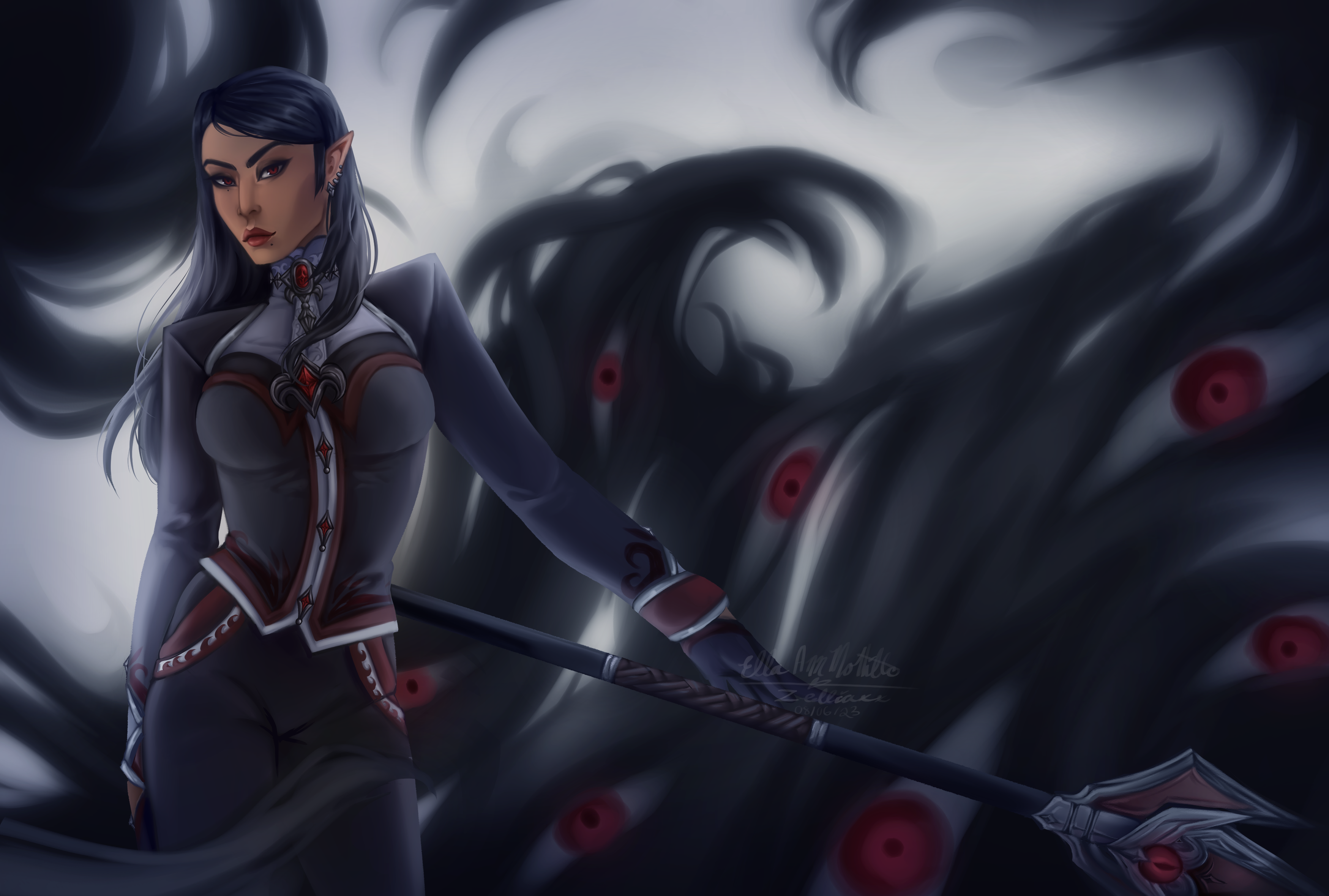 A piece that I made for someone. Alune taking hold of the moon, absorbing its power.