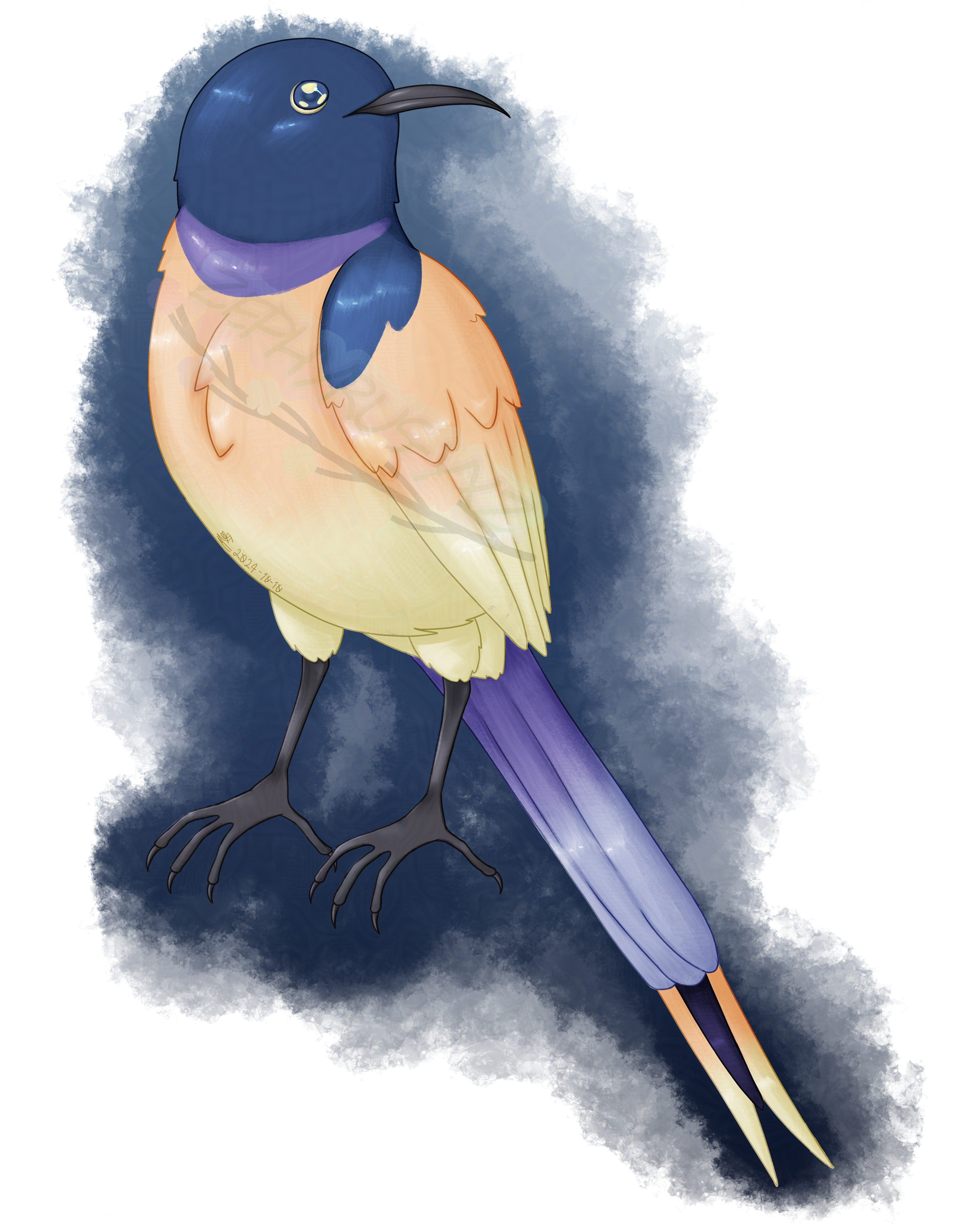 _Image Description: A fullbody illustration of Notus, Zeph's character. Notus matches the physical features of a sunbird. Her feathers are dark navy blue, dark purple, pale blue, pastel orange, and pastel yellow. Her head is blue, her neck is dark purple, her stomach and wings are an orange-to-yellow gradient, and her tail feathers are first dark purple-to-light blue and then orange-to-yellow. Her beak and feet are a dark grey. Her eyes are a dark blue with very light yellow highlights._Nother birb OC,,,, weeee _Image Description: A fullbody illustration of Notus, Zeph's character. Notus matches the physical features of a sunbird. Her feathers are dark navy blue, dark purple, pale blue, pastel orange, and pastel yellow. Her head is blue, her neck is dark purple, her stomach and wings are an orange-to-yellow gradient, and her tail feathers are first dark purple-to-light blue and then orange-to-yellow. Her beak and feet are a dark grey. Her eyes are a dark blue with very light yellow highlights._0 Comments 0 Shares 6 Views -