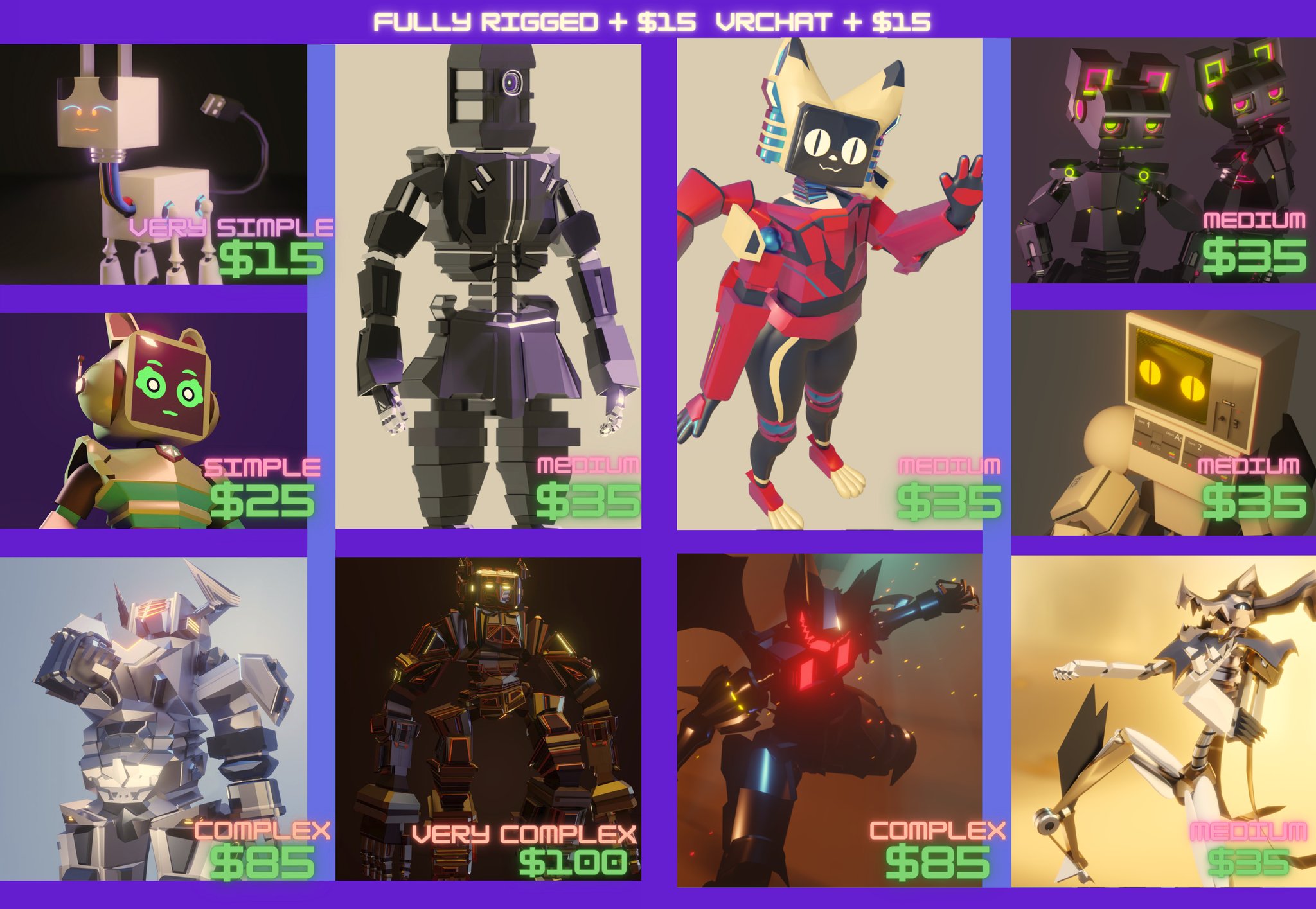 I am capable of modeling all sorts of different types of robots that differ in terms of quality and style, including implementation of VRchat.